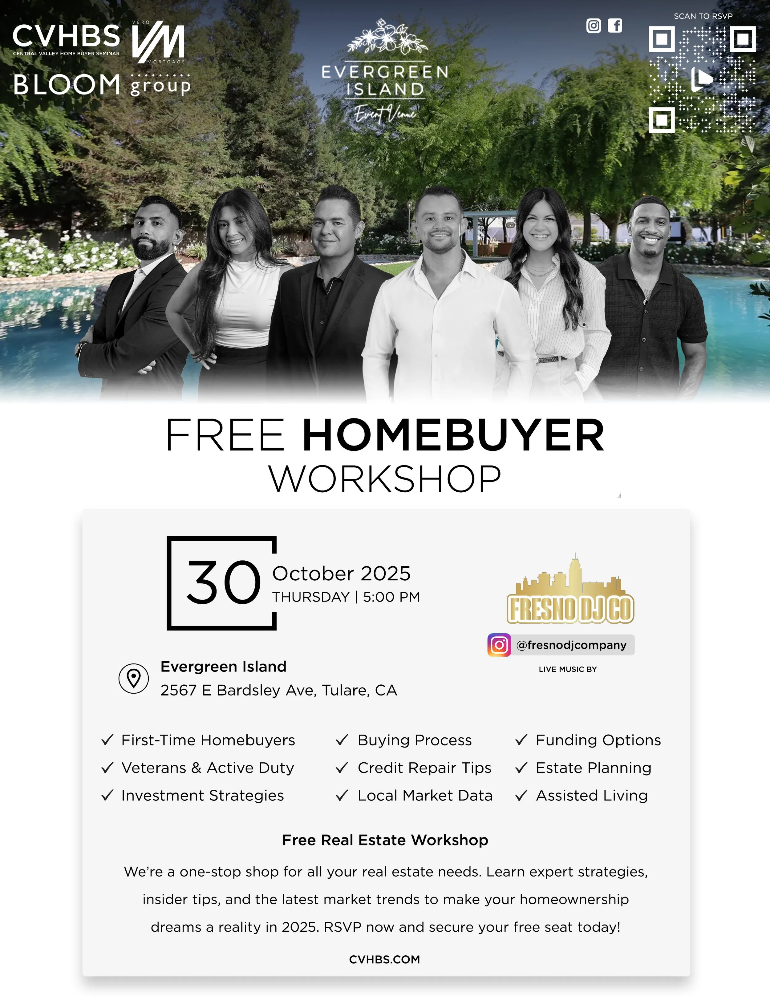 Join us Thursday October 30th, 2025 for our Central Valley Home Buying Seminar.